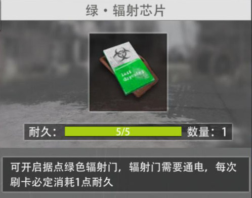 6、綠-輻射芯片:刷新地點木屋、熊洞、喪尸、超市、加油站、各大物資點樓梯房樓頂等。